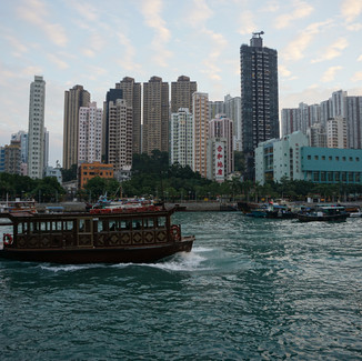 黄昏ゆく香港仔の景色は美しく、どこかノスタルジックで、それをゆっくりと堪能してから小船で渡ります。なんせバスの中から遠足気分ですでに皆さまテンションマックスw。